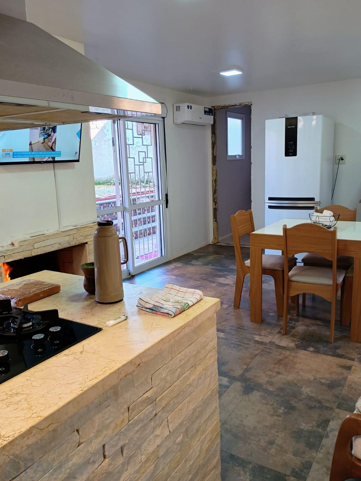 Linda residência com 2 dormitórios, sendo 1 suíte com closet, sala aconchegante, cozinha com lareira, área de serviço e banheiro social.