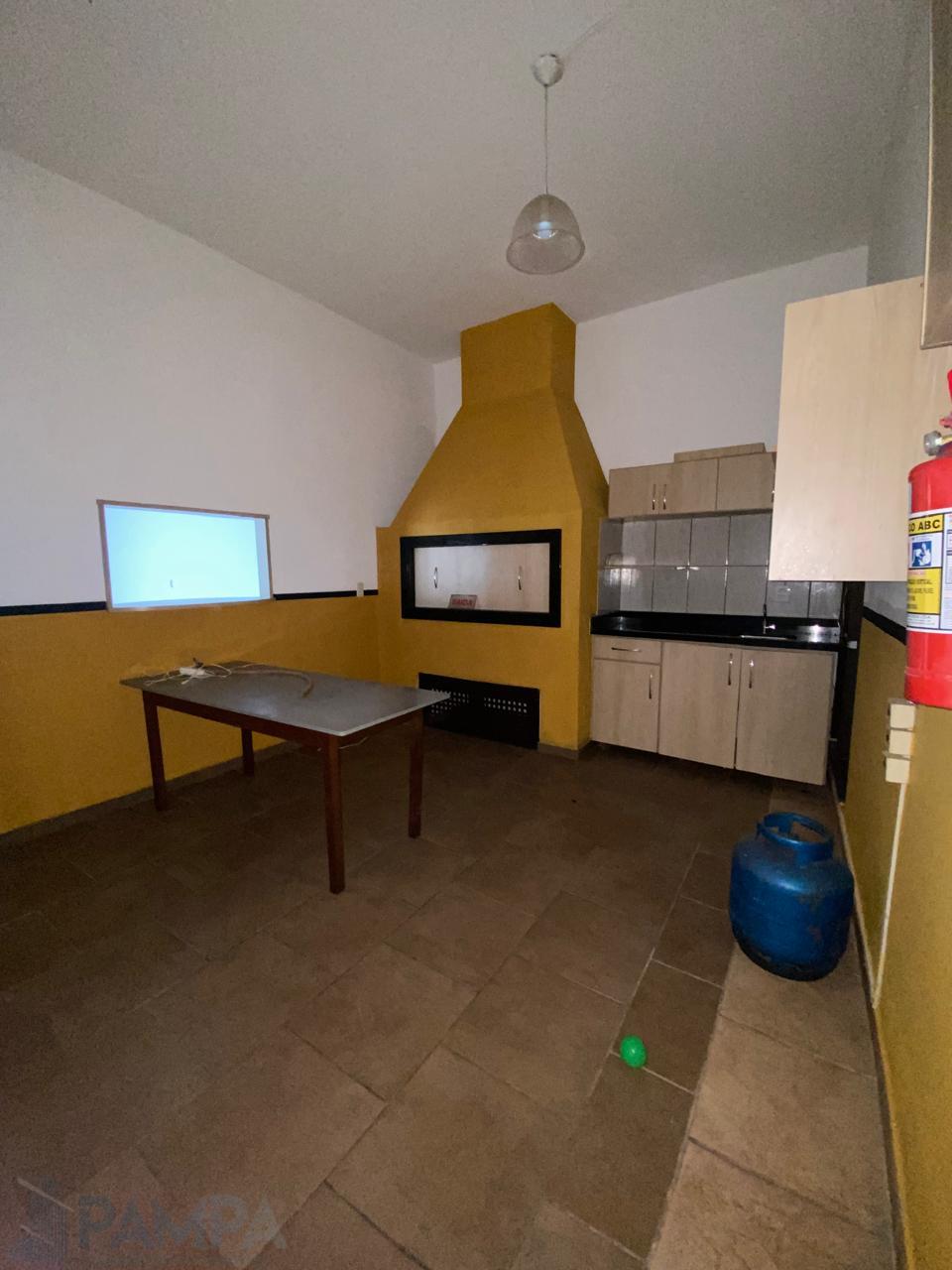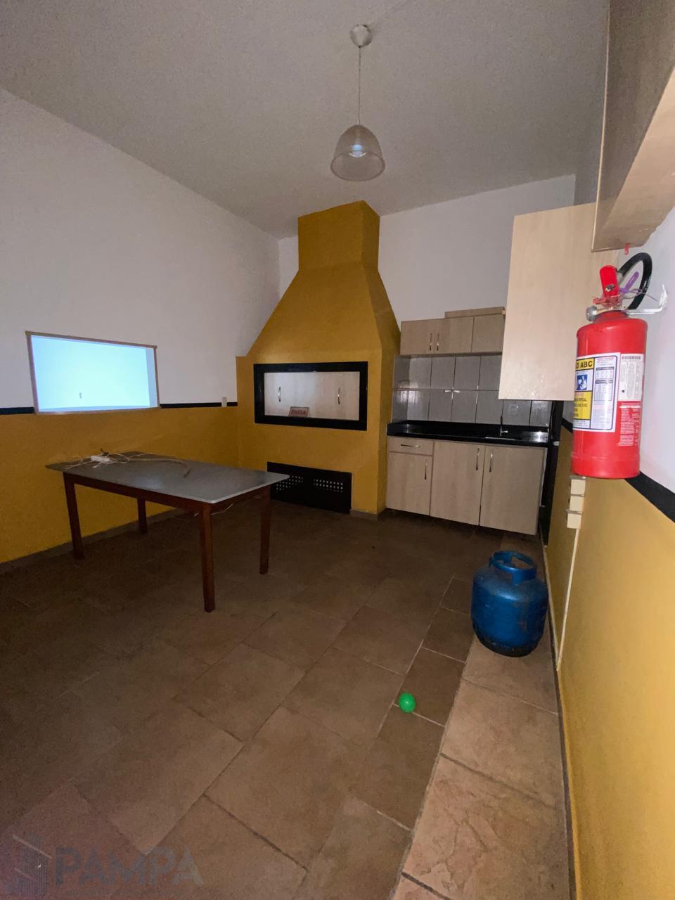 Com um amplo salão logo na entrada, dois banheiros, sala, espaço externo, cozinha com churrasqueira e outra sala com saída para a parte externa.